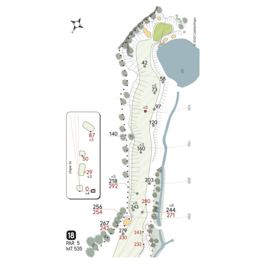 Le 18 buche sono immerse in boschi di uliveti e sughere, circondate da laghetti e specchi d’acqua. Il clima mite e la piacevole brezza che si respira, rendono questo percorso unico e giocabile tutti i giorni dell’anno.