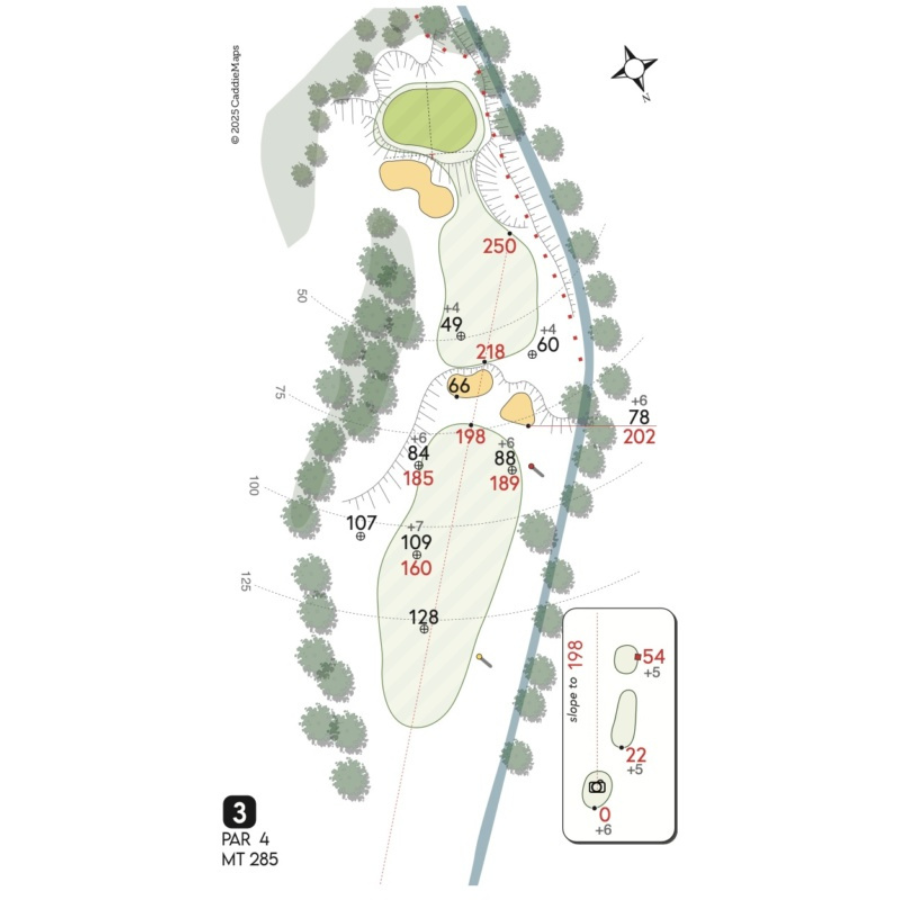 Il campo a 18 buche e il campo pratica, inaugurati nel 2006, sono stati disegnati dall’architetto David Mezzacane e dal giocatore professionista Baldovino Dassù, bandiera del golf italiano nel mondo. Le buche sono state poi modellate dallo specialista Brian Jorgensen: il risultato è un tracciato vario, spettacolare e tecnicamente molto valido.